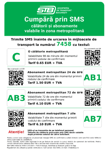 You can purchase a ticket by sending an SMS to 7458 from any Romanian commercial mobile network (The cost is added to your phone bill).